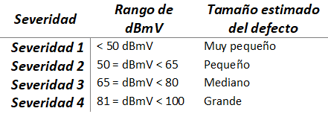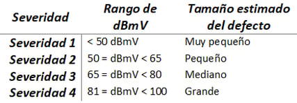 La severidad se categoriza según rangos de dBmV del paper AMPP 06191