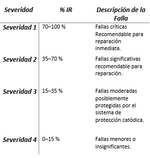 Se calcula el %IR (porcentaje de caída IR) y se categoriza según AMPP 06191.